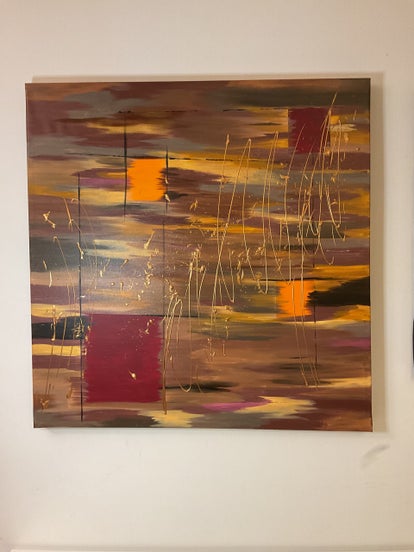 I toni caldi dialogano tra loro senza scontrarsi, mentre l’oro attraversa la superficie come una presenza silenziosa, discreta ma persistente.